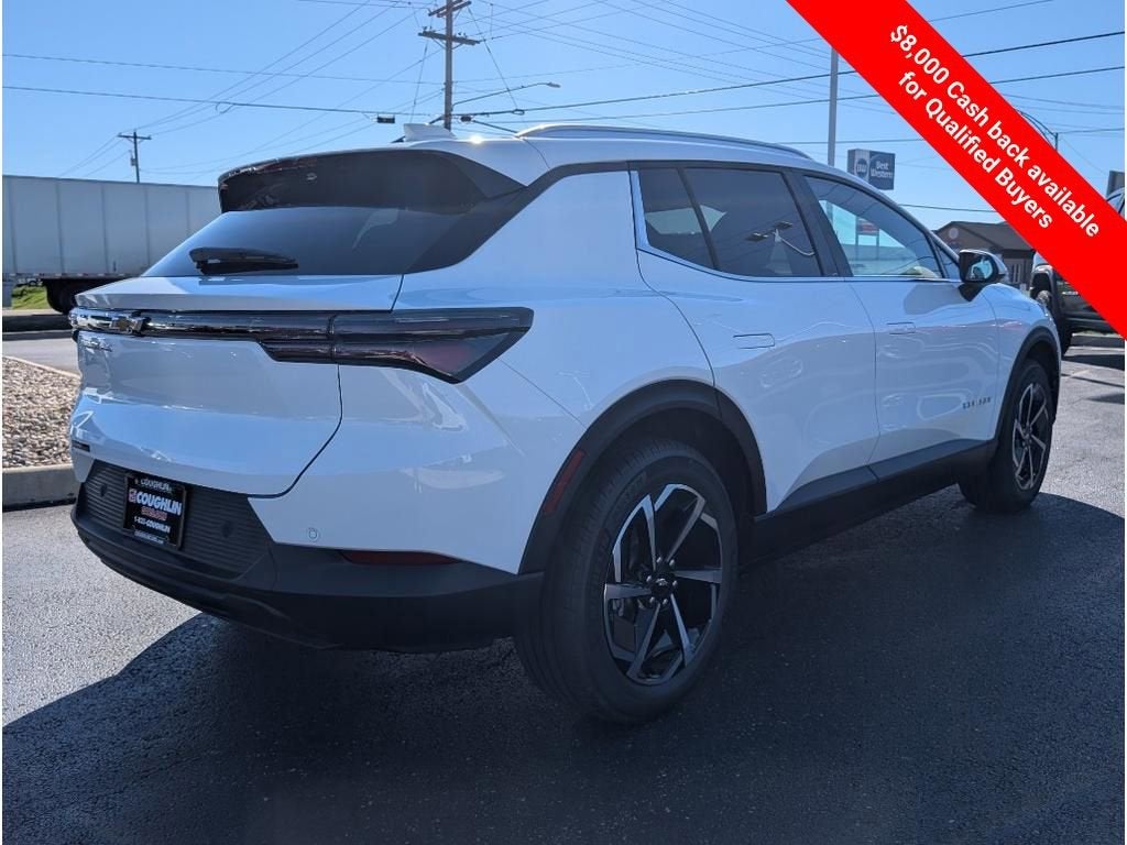 Price includes: Valid with all retail purchases and not eligible with subvented rates Please call for more information. If you don't see the car of your dreams in our huge inventory, chances are we can get it for you! 19 Wheels, 4-Wheel Disc Brakes, 6 Speakers, 6-Speaker Audio System Feature, ABS brakes, Active Safety Package 2, Air Conditioning, All-Weather Cargo Area Liner, All-Weather Liner Package, Alloy wheels, AM/FM radio: SiriusXM with 360L, Ambient Multi-Color Interior Lighting, Auto High-beam Headlights, Auto-Dimming Inside Rear-View Mirror, Auto-dimming Rear-View mirror, Automatic temperature control, Autosense Hands-Free Programmable Power Liftgate, Brake assist, Bright Roof Rails, Bumpers: body-color, Comfort Package, Compass, Contoured All-Weather Floor Liners, Delay-off headlights, Driver 8-Way Power Seat Adjuster, Driver and Front Passenger Illuminated Visors, Driver door bin, Driver vanity mirror, Dual front impact airbags, Dual front side impact airbags, Dual Motor All-Wheel Drive (AWD), Electric Drive Unit, Electronic Stability Control, Emergency communication system: OnStar and Chevrolet connected services capable, Enhanced Traffic Sign Recognition, Evotex Seat Trim, Four wheel independent suspension, Front anti-roll bar, Front Bucket Seats, Front Center Armrest, Front Electric AWD Propulsion, Front Passenger 4-Way Manual Seat Adjuster, Front reading lights, Fully automatic headlights, GM Energy PowerShift Charger, HD Surround Vision, Headlamps-Center Lit Bar, Heated Automatic Steering Wheel, Heated door mirrors, Heated Driver and Front Passenger Seats Cushion and Seatback, Heated front seats, Heated steering wheel, Hitch Guidance, Hitch View, Illuminated entry, Knee airbag, Low tire pressure warning, LT 2 Package, Manual Folding Heated Outside Mirrors, NACS DC Adapter, Navigation system: Google built-in compatibility (select service plan required, terms and limitations apply), Occupant sensing airbag, Outside temperature display, Overhead airbag, Overhead console, Panic alarm, Passenger door bin, Passenger vanity mirror, Power door mirrors, Power Driver Lumbar Control, Power driver seat, Power Liftgate, Power steering, Power windows, Power Windows with Driver Express-Up, Preferred Equipment Group 2LT, Radio: 17.7 Diagonal Advanced Color LCD Display, Rear anti-roll bar, Rear Pedestrian Alert, Rear reading lights, Rear seat center armrest, Rear window defroster, Rear window wiper, Remote keyless entry, Round Bottom Wrapped Steering Wheel, Security system, SiriusXM with 360L Trial Subscription, Speed control, Split folding rear seat, Spoiler, Steering wheel mounted audio controls, Telescoping steering wheel, Tilt steering wheel, Traction control, Trip computer, Turn signal indicator mirrors, Variably intermittent wipers, Wireless Phone Charging.