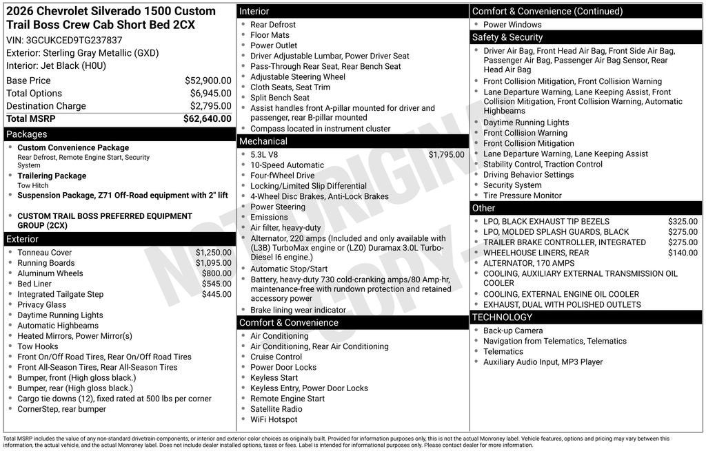 - Custom Trail Boss Preferred Equipment Group includes standard equipment