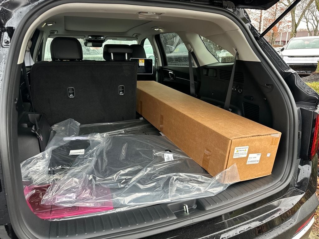 Equipped with S Panoramic Sunroof Package (Full-Length One-Touch Panoroof with Sliding Sunshade and LED Interior Lighting), 3rd row seats: split-bench, 4-Wheel Disc Brakes, 6 Speakers, ABS brakes, Air Conditioning, Alloy wheels, AM/FM radio: SiriusXM, Apple CarPlay & Android Auto, Auto High-beam Headlights, Auto-Dimming Mirror with HomeLink, Automatic temperature control, Brake assist, Bumpers: body-color, Cargo Net, Cargo Tray, Carpeted Floor Mats, Cross Bars, Delay-off headlights, Driver door bin, Driver vanity mirror, Dual front impact airbags, Dual front side impact airbags, Electronic Stability Control, Emergency communication system: 911 Connect, Exterior Parking Camera Rear, Four wheel independent suspension, Front anti-roll bar, Front Bucket Seats, Front Center Armrest, Front dual zone A/C, Front reading lights, Fully automatic headlights, Heated door mirrors, Heated Front Bucket Seats, Heated front seats, Illuminated entry, Knee airbag, Leather Shift Knob, Leather steering wheel, Low tire pressure warning, Occupant sensing airbag, Outside temperature display, Overhead airbag, Overhead console, Panic alarm, Passenger door bin, Passenger vanity mirror, Power door mirrors, Power driver seat, Power steering, Power windows, Radio data system, Radio: AM/FM Standard Sound System, Rear anti-roll bar, Rear reading lights, Rear seat center armrest, Rear Seat Entertainment System, Rear side impact airbag, Rear window defroster, Rear window wiper, Remote keyless entry, Security system, Speed control, Speed-sensing steering, Split folding rear seat, Spoiler, Steering wheel mounted audio controls, SynTex Artificial Leather Seat Trim, Tachometer, Telescoping steering wheel, Tilt steering wheel, Traction control, Trip computer, Turn signal indicator mirrors, Variably intermittent wipers, and Wheels: 18 Gloss Black Alloy. Price includes: $2000 - Kia Customer Cash. Exp. 03/02/2026 $500 - Military Program. Exp. 03/02/2026