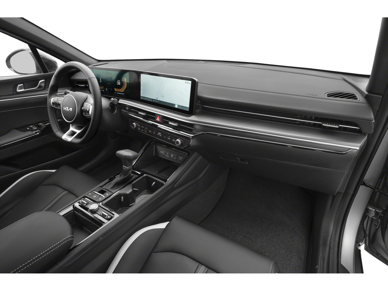 Equipped with GT-Line Premium Package (Active Sound Design, Bose Premium Audio, LED Interior Lighting, and Panoramic Sunroof), 4-Wheel Disc Brakes, 6 Speakers, ABS brakes, Air Conditioning, Alloy wheels, AM/FM radio: SiriusXM, Auto High-beam Headlights, Automatic temperature control, Brake assist, Bumpers: body-color, Carpeted Floor Mats, Delay-off headlights, Driver door bin, Driver vanity mirror, Dual front impact airbags, Dual front side impact airbags, EC Mirror w/Homelink, Electronic Stability Control, Emergency communication system: Kia Connect (includes 1 year free trial), Four wheel independent suspension, Front anti-roll bar, Front Bucket Seats, Front Center Armrest, Front dual zone A/C, Front fog lights, Front reading lights, Fully automatic headlights, Heated door mirrors, Heated Front Bucket Seats, Heated front seats, Heated steering wheel, Illuminated entry, Knee airbag, Leather Shift Knob, Leather steering wheel, Low tire pressure warning, Mud Guards, Navigation System, Occupant sensing airbag, Outside temperature display, Overhead airbag, Overhead console, Panic alarm, Passenger door bin, Passenger vanity mirror, Power door mirrors, Power driver seat, Power steering, Power windows, Radio data system, Radio: AM/FM Audio System, Rear anti-roll bar, Rear seat center armrest, Rear side impact airbag, Rear window defroster, Remote keyless entry, Security system, Speed control, Speed-sensing steering, Split folding rear seat, Sport steering wheel, Steering wheel mounted audio controls, Tachometer, Telescoping steering wheel, Tilt steering wheel, Traction control, Trip computer, Turn signal indicator mirrors, Variably intermittent wipers, and Wheels: 18 x 7.5J Gloss Black Machined Finish Alloy.