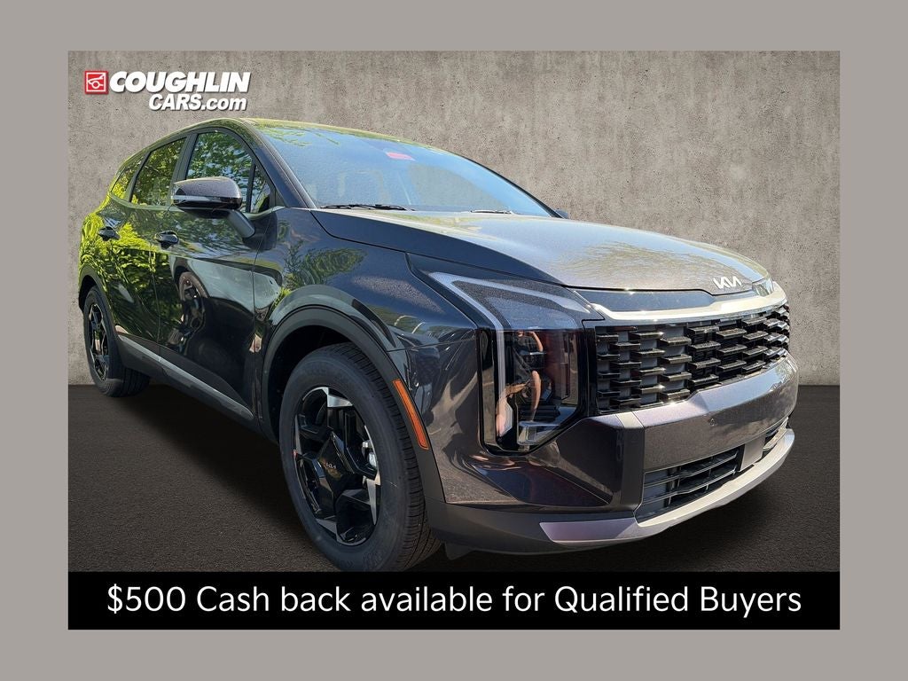 Equipped with 4-Wheel Disc Brakes, 6 Speakers, ABS brakes, Air Conditioning, Alloy wheels, AM/FM radio, Auto High-beam Headlights, Automatic temperature control, Brake assist, Bumpers: body-color, Cargo Mat with Seatback Protection, Cargo Net Without Audio, Carpeted Floor Mats, Delay-off headlights, Driver door bin, Driver vanity mirror, Dual front impact airbags, Dual front side impact airbags, Electronic Stability Control, Emergency communication system: Kia Connect (includes 1 year free trial), Four wheel independent suspension, Front anti-roll bar, Front Bucket Seats, Front Center Armrest, Front dual zone A/C, Fully automatic headlights, Heated door mirrors, Heated Front Bucket Seats, Heated front seats, Illuminated entry, Leather Shift Knob, Leather steering wheel, Low tire pressure warning, Occupant sensing airbag, Outside temperature display, Overhead airbag, Overhead console, Panic alarm, Passenger door bin, Passenger vanity mirror, Power door mirrors, Power driver seat, Power Liftgate, Power steering, Power windows, Radio: AM/FM/HD Audio System, Rain sensing wipers, Rear anti-roll bar, Rear seat center armrest, Rear side impact airbag, Rear window defroster, Rear window wiper, Remote keyless entry, Security system, Speed control, Speed-sensing steering, Split folding rear seat, Spoiler, Steering wheel mounted audio controls, Syntex Leatherette Seat Trim, Tachometer, Telescoping steering wheel, Tilt steering wheel, Traction control, Trip computer, Turn signal indicator mirrors, Variably intermittent wipers, and Wheels: 18 x 7.5J Machined Alloy. Price includes: $500 - Military Program. Exp. 05/04/2026 KFA Dealer Choice Bonus Cash Program Not all customers may qualify for this offer. Please contact us with questions. Customer must finance through KFA