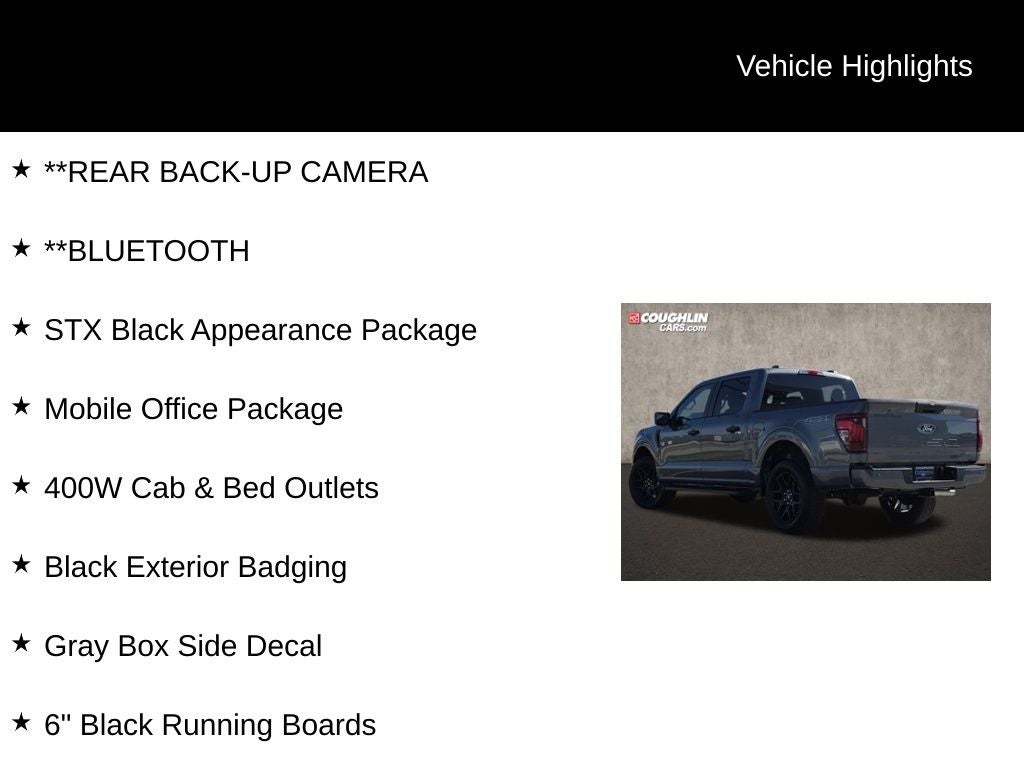 Experience the difference for yourself. Visit our showroom today and let us demonstrate how the 2025 Ford F-150 STX 4X4 can transform the way you work and play. We're confident you'll be impressed by its uncompromising capabilities and refined design. Take the first step towards owning this exceptional truck and schedule a test drive now. Price includes: $1250 - Retail Bonus Cash. Exp. 03/31/2026 $2000 - Retail Customer Cash. Exp. 03/31/2026 $500 - Retail Bonus Cash. Exp. 03/31/2026