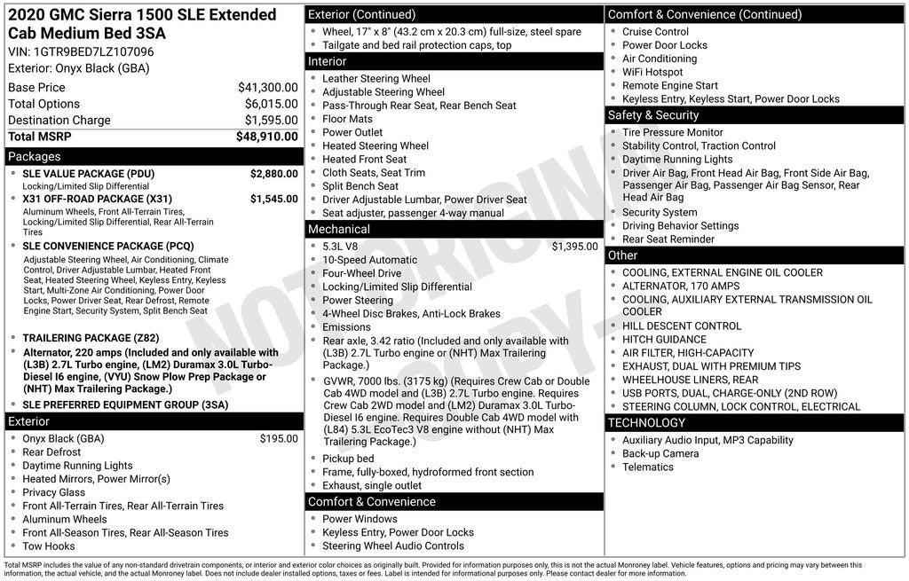 Onyx Black 2020 GMC Sierra 1500 SLE