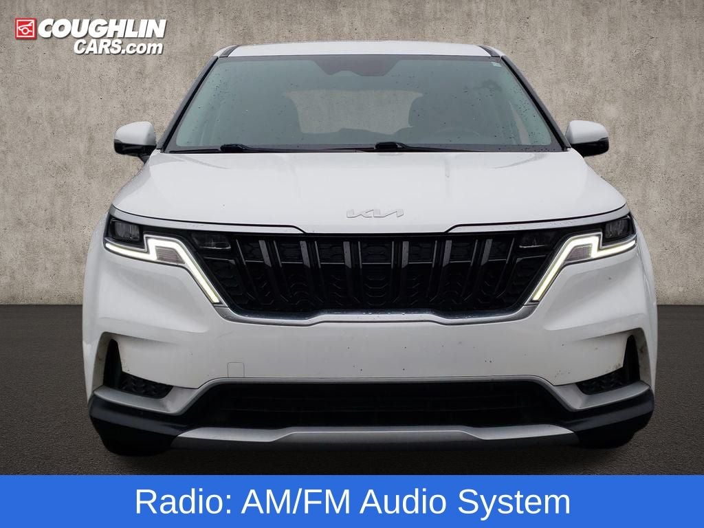 Snow White Pearl 2022 Kia Carnival LXS FWD 8-Speed Automatic V6 Carnival LXS, 4D Passenger Van, V6, 8-Speed Automatic, FWD, Snow White Pearl, Gray Artificial Leather, 2-Way Power Driver's Lumbar Support, 3.51 Axle Ratio, 3rd row seats: split-bench, 4-Wheel Disc Brakes, 6 Speakers, 8 Way Power Driver's Seat, ABS brakes, Air Conditioning, Alloy wheels, AM/FM radio, Apple CarPlay & Android Auto, Artificial Leather Seat Trim, Auto High-beam Headlights, Brake assist, Bumpers: body-color, Cargo Net, Carpeted Floor Mats (8-Passenger), Delay-off headlights, Driver door bin, Driver vanity mirror, Dual front impact airbags, Dual front side impact airbags, Electronic Stability Control, Four wheel independent suspension, Front anti-roll bar, Front Bucket Seats, Front Center Armrest, Front reading lights, Fully automatic headlights, Heated door mirrors, Heated Front Bucket Seats, Heated front seats, Illuminated entry, Knee airbag, Leather Shift Knob, Leather steering wheel, Low tire pressure warning, Occupant sensing airbag, Outside temperature display, Overhead airbag, Overhead console, Panic alarm, Passenger door bin, Passenger vanity mirror, Power door mirrors, Power driver seat, Power steering, Power windows, Radio: AM/FM Audio System, Rear air conditioning, Rear anti-roll bar, Rear reading lights, Rear window defroster, Rear window wiper, Reclining 3rd row seat, Remote keyless entry, Security system, Speed control, Speed-sensing steering, Split folding rear seat, Spoiler, Steering wheel mounted audio controls, Tachometer, Telescoping steering wheel, Tilt steering wheel, Traction control, Trip computer, Turn signal indicator mirrors, Variably intermittent wipers, Wheels: 6.5J x 17 Clear Silver Painted Alloy.